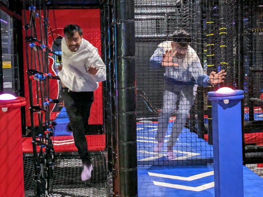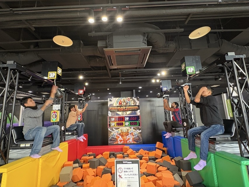 ブートバースは、屋内(おくない)で体(からだ)を動(うご)かしながらゲームができる施設(しせつ)です。飛(と)んだり、跳(は)ねたり、走(はし)ったりして、みんなで楽(たの)しく遊(あそ)びました。