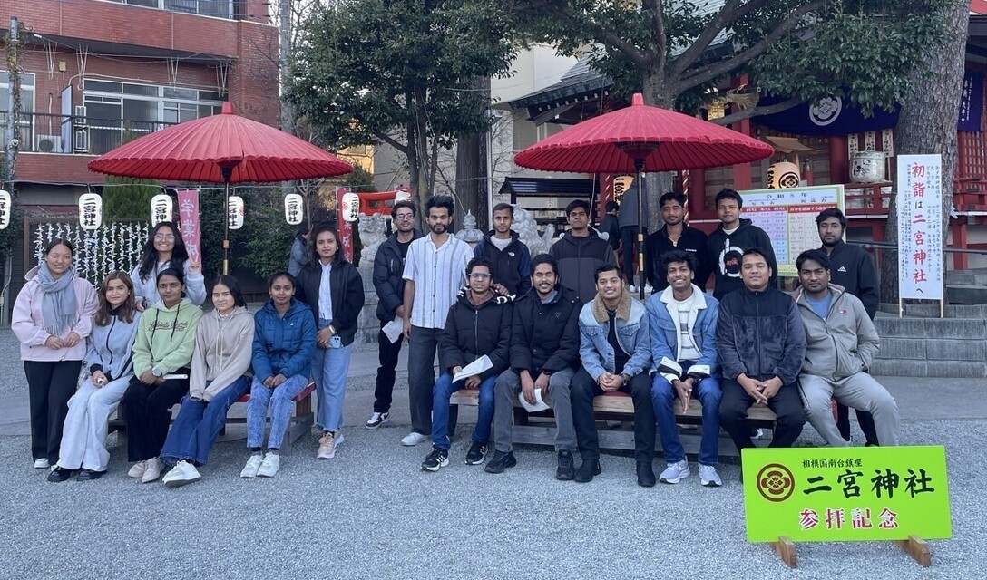 先日、学生たちが近くの神社(じんしゃ)に初詣(はつもうで)に行きました。